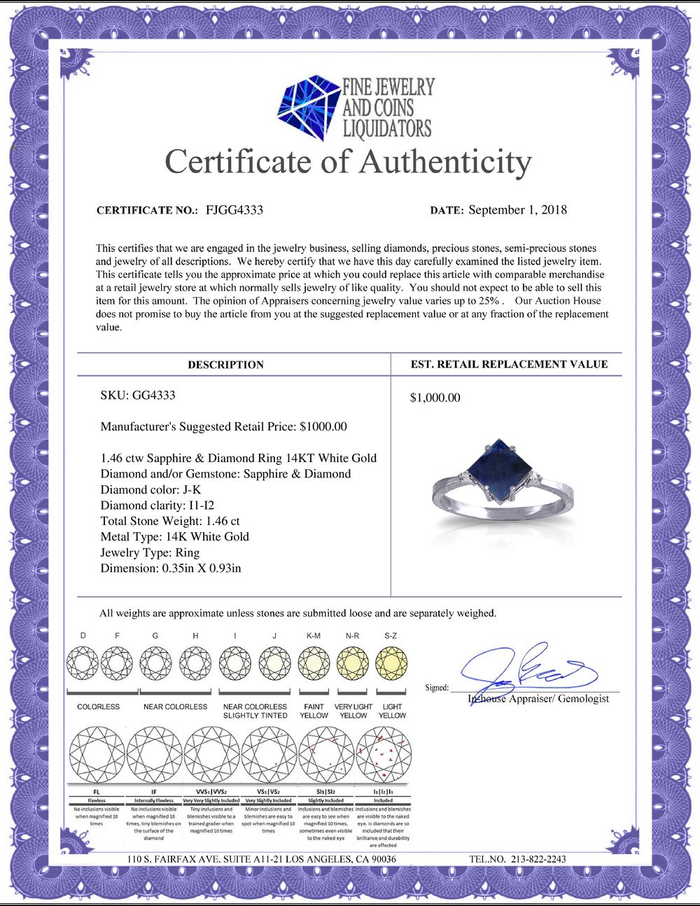 REF-32P9H - SKU: GG4333 ---- Genuine 1.46 ctw Sapphire & Diamond Ring 14KT White Gold