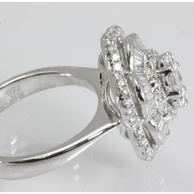 Diamond Clarity: SI1-SI2; ; Diamond Color: G-H ; Metal: 18KT ; Gold: White Gold ; Gold Weight: 7.25 ; Diamond Count: 67RD ; Diamond Weight: 1.06 ; Diamond Count 2: 42TP ; Diamond Weight 2: 0.41 ; Gemstone Count: N/A ; Ring Size:6.5
