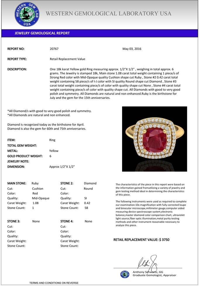 total approx. 6 grams. The Jewelry is stamped 18k, Main stone 1.08 carat total weight containing 1 piece/s of Strong Red color with