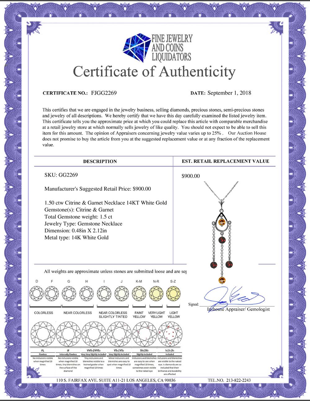 REF-29Y7F - SKU: GG2269 ---- Genuine 1.50 ctw Citrine & Garnet Necklace 14KT Rose Gold