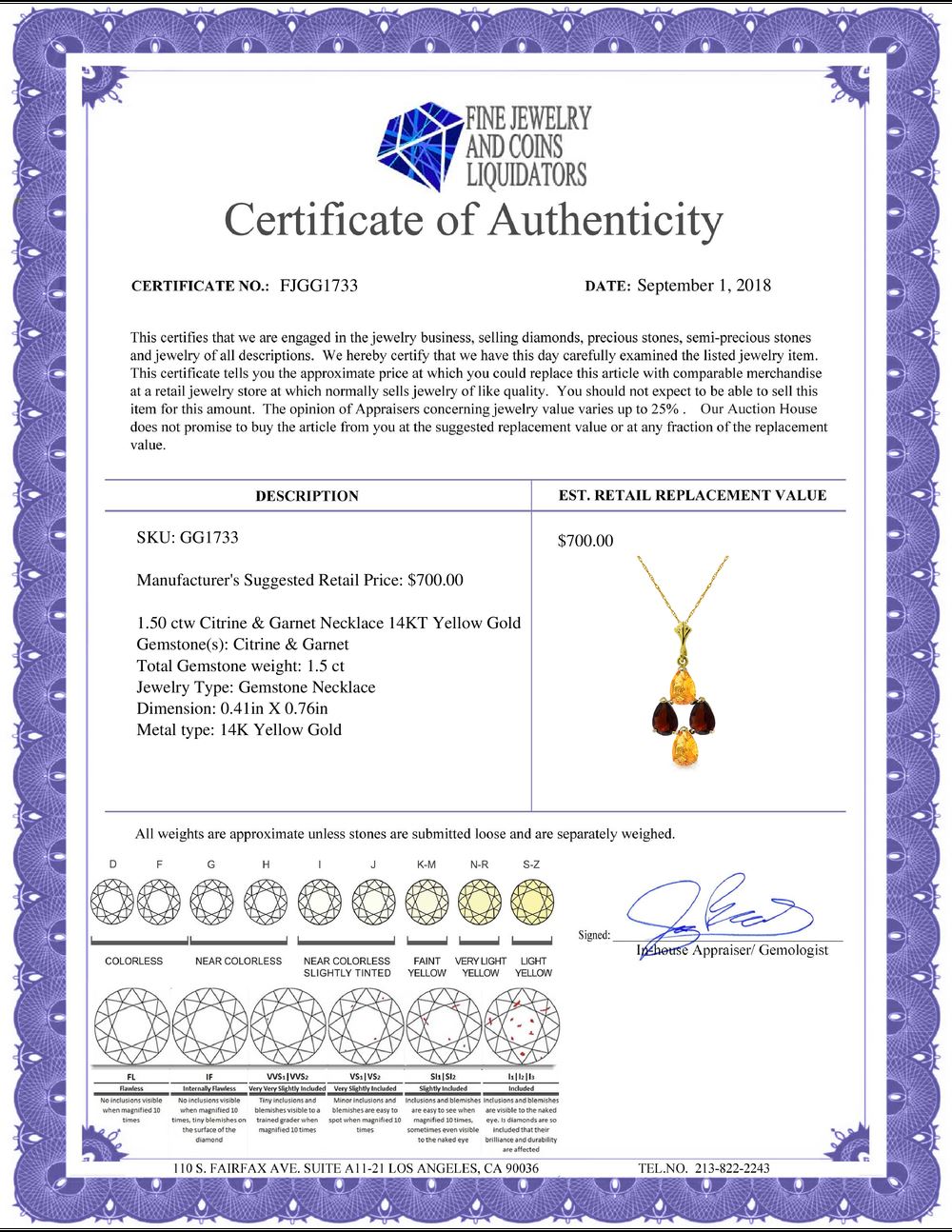 REF-20X4M - SKU: GG1733 ---- Genuine 1.50 ctw Citrine & Garnet Necklace 14KT Yellow Gold