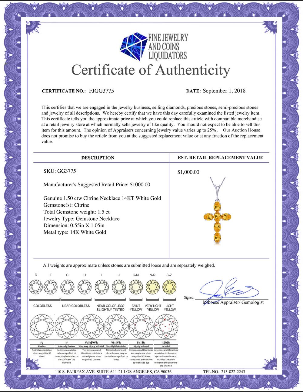 REF-32P8H - SKU: GG3775 ---- Genuine 1.50 ctw Citrine Necklace 14KT Rose Gold