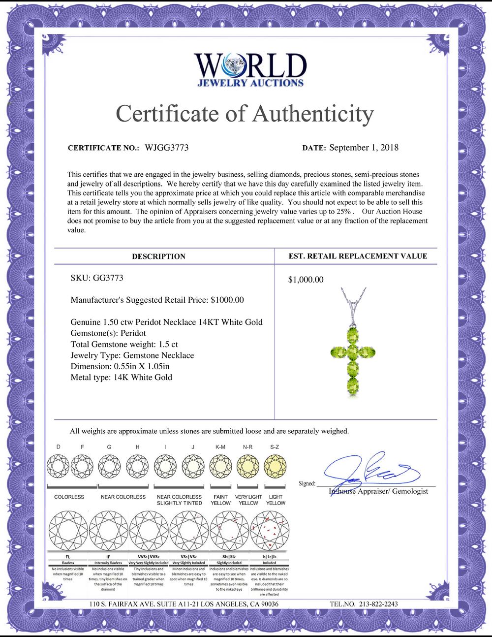REF-32A8K - SKU: GG3773 ---- Genuine 1.50 ctw Peridot Necklace 14KT White Gold