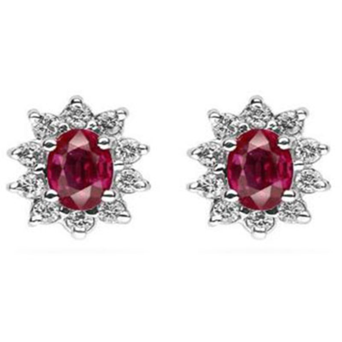Total CTW: 1.5 ctw ; Mainstone: Ruby ; Style: Flower-Oval ; Metal Purity: 14k: Metal: Yellow or White Gold ; Weight(g): 1.9 ; Diamond Cut: 20 ROUNDCUT ; Diamond CTW 1: 0.3 ; Diamond Clarity : SI1/SI2 ; Diamond Color: G-H ; Gemstone Count: 2 OVALC; Availability: 3-10 Business days, ready to ship, with certification of appraisal will take 2 weeks. ; MSRP: $1000