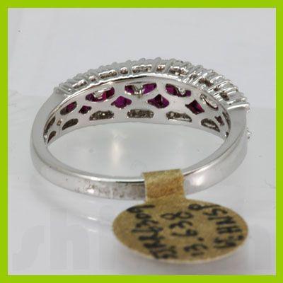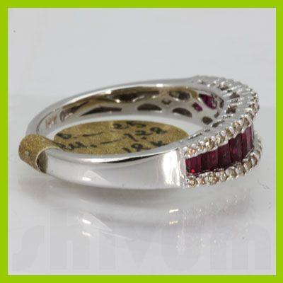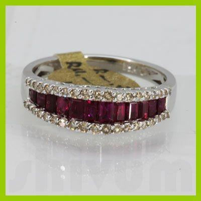 Gemstone: Ruby ; Gemstone Weight: 1.28 ; Diamond Count: 38RD ; Diamond Weight: 0.25; Metal Purity: 18KT ; Metal: White Gold ; Ring Size: 6.5 ; MSRP: $2257