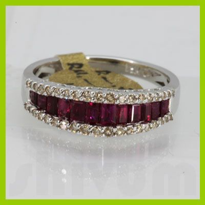 Gemstone: Ruby ; Gemstone Weight: 1.28 ; Diamond Count: 38RD ; Diamond Weight: 0.25; Metal Purity: 18KT ; Metal: White Gold ; Ring Size: 6.5 ; Availability: 3-10 Business days, ready to ship, with certification of appraisal will take 2 weeks. ; MSRP: $1823
