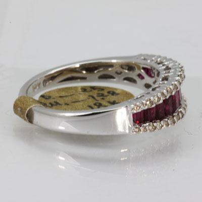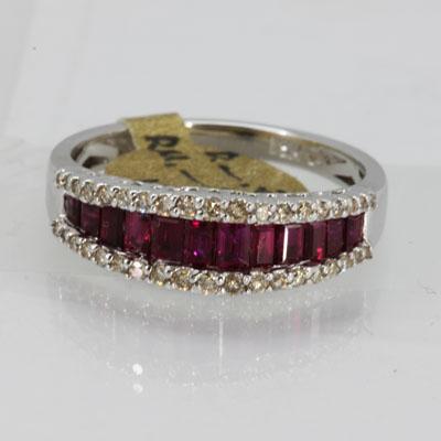 Gemstone: Ruby ; Gemstone Weight: 1.28 ; Diamond Count: 38RD ; Diamond Weight: 0.25; Metal Purity: 18KT ; Metal: White Gold ; Ring Size: 6.5