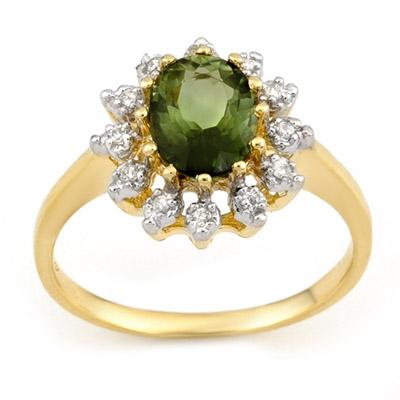 Diamond: 12 Round cut @ 0.12 ctw---- Clarity: SI-I---- Color: H-K----Gemstone: Natural Tourmaline----Gemstone color: Green----Gemstone quality: Good-to-Very Good----Gemstone Cut & Weight: 1 Oval cut @ 1.50 ctw----Metal Purity & Color : 10K Gold-Yellow----Gold weight: 3.0 grams----Ring size (US): 6.75----Dimension: Approx. 7/16 x 7/16----Consignor: World Jewelry Outlet----Delivery: Within 10 business days