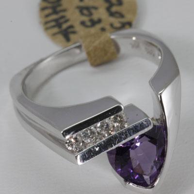 Main Stone: Amethyst ; Diamond CTW: 0.15 ; Gemsonte CTW: 1.54 : Main Stone Treatment: Not Enhanced ; Exact Total Weight: 1.69 ; Metal: White Gold ; Ring Size: 7 ; Main Stone Color: Purple ; Metal Purity: 14K (Soild, Unplated) ; Condition: New