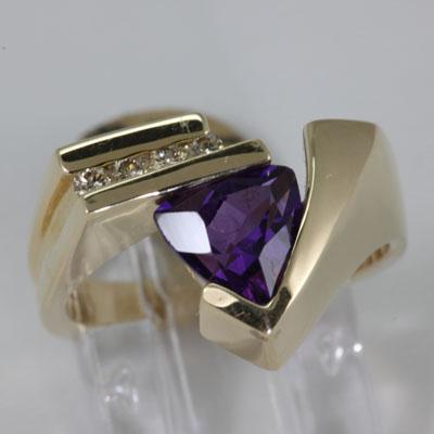 Main Stone: Amethyst ; Diamond CTW: 0.15 ; Gemsonte CTW: 1.54 : Main Stone Treatment: Not Enhanced ; Exact Total Weight: 1.69 ; Metal: Yellow Gold ; Ring Size: 7 ; Main Stone Color: Purple ; Metal Purity: 14K (Soild, Unplated) ; Condition: New