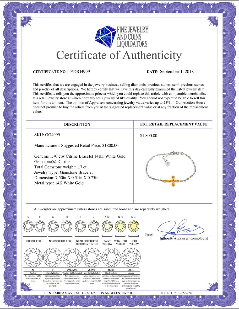 REF-59Y8F - SKU: GG4999 ---- Genuine 1.70 ctw Citrine Bracelet 14KT Rose Gold