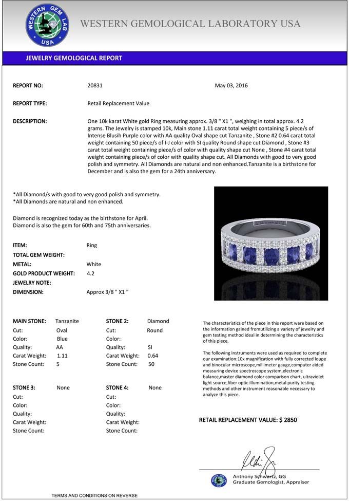 total approx. 4.2 grams. The Jewelry is stamped 10k, Main stone 1.11 carat total weight containing 5 piece/s of Intense Blusih Purple color with