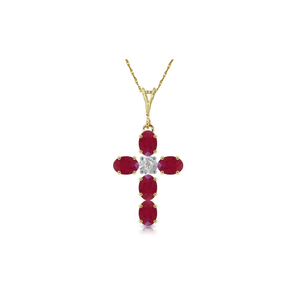 REF-44W4Y - SKU: GG1694 ---- Genuine 1.75 ctw Ruby & Diamond Necklace 14KT Yellow Gold