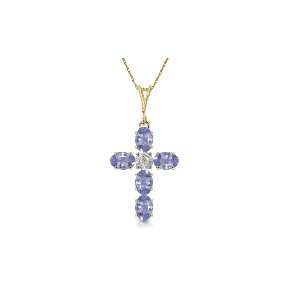 REF-52F9Z - SKU: GG1709 ---- Genuine 1.75 ctw Tanzanite & Diamond Necklace 14KT Yellow Gold