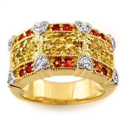 Genuine 1.75ct Red, Yellow Sapphire & Diamond Ring Gold - Retails for $3290 ---- Diamond: 8 Round cut @ 0.15 ctw---- Clarity: SI-I---- Color: H-K----Gemstone: Natural Sapphire----Gemstone color: Red----Gemstone quality: Good-to-Very Good----Gemstone Cut & Weight: 42 Round cut @ 1.60 ctw----Metal Purity & Color : 14K Gold-Yellow----Gold weight: 9.80 grams----Ring size (US): 6.75----Dimension: Approx. 3/8 x 13/16--------Shipping: Within 15 business days