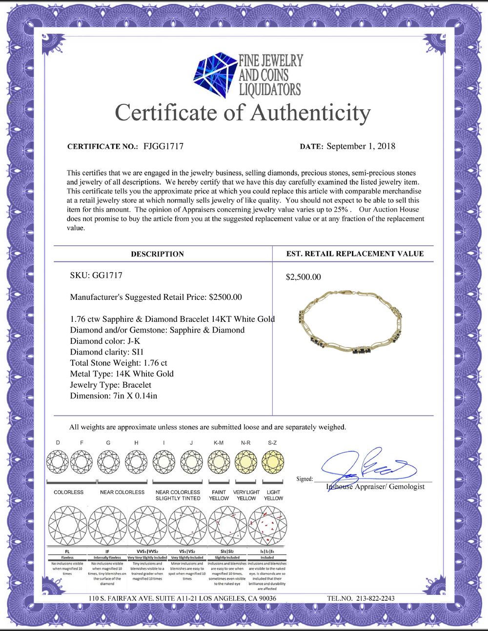 REF-81N7R - SKU: GG1717 ---- Genuine 1.76 ctw Sapphire & Diamond Bracelet 14KT White Gold