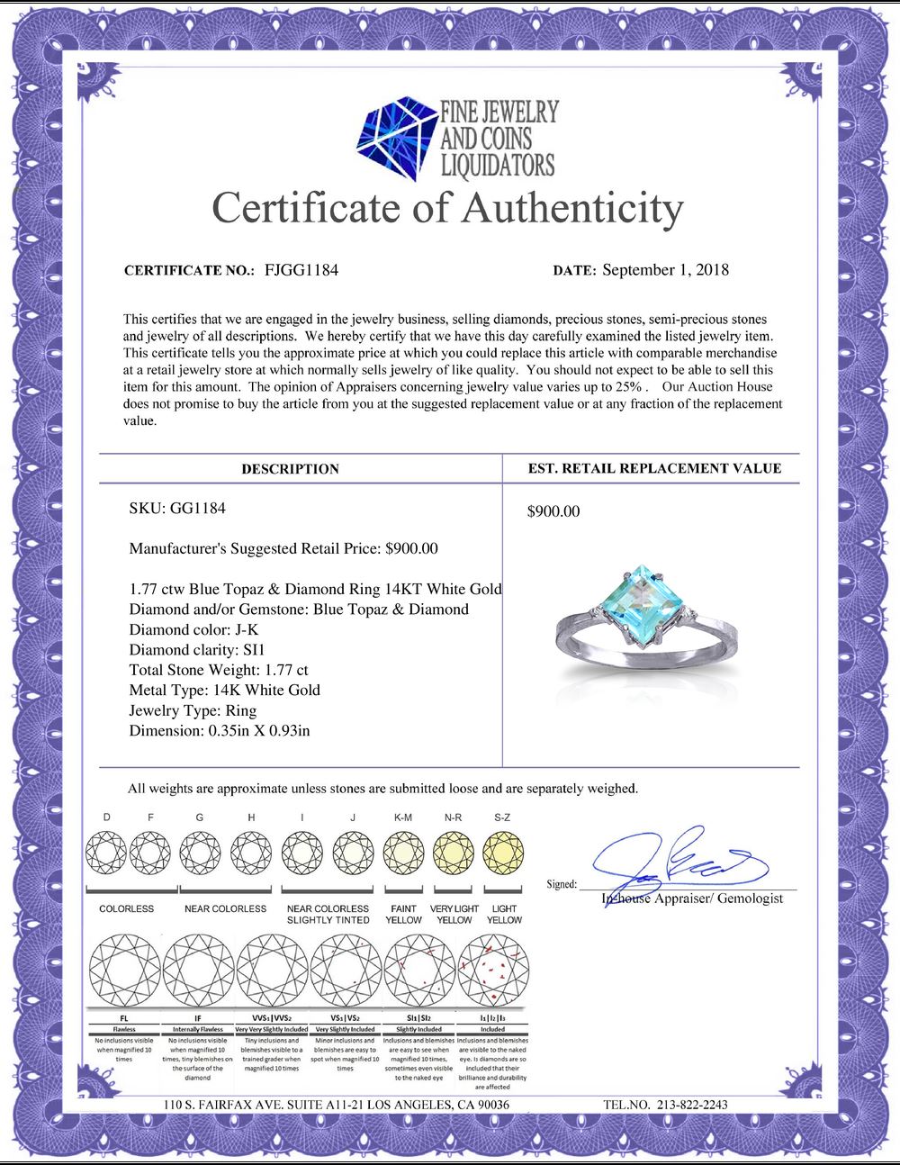 All Gia and EGL Diamonds are subject to availability due to consignors’ terms with us.
