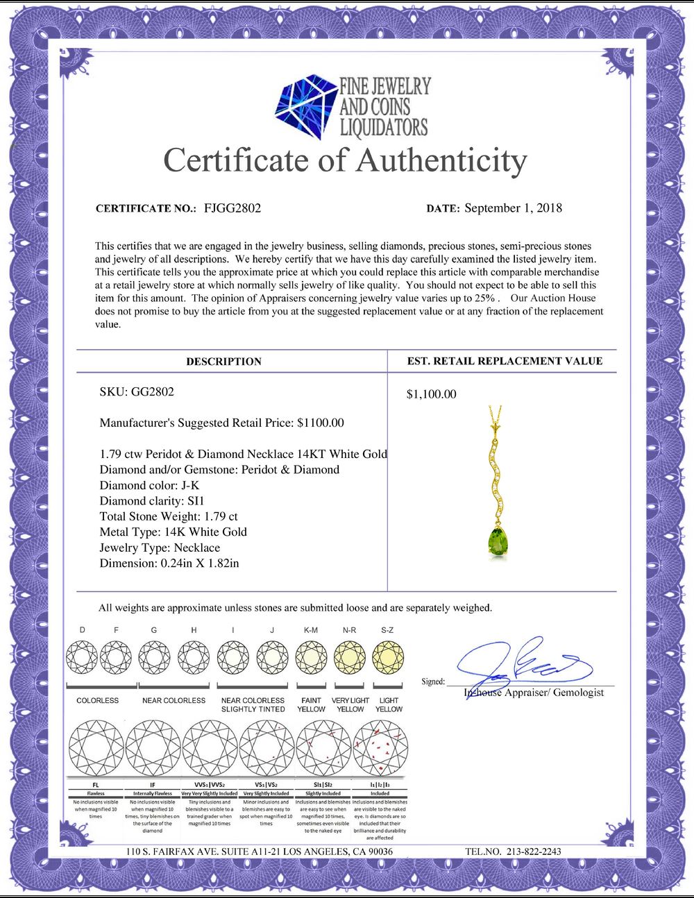 REF-34Y6F - SKU: GG2802 ---- Genuine 1.79 ctw Peridot & Diamond Necklace 14KT White Gold