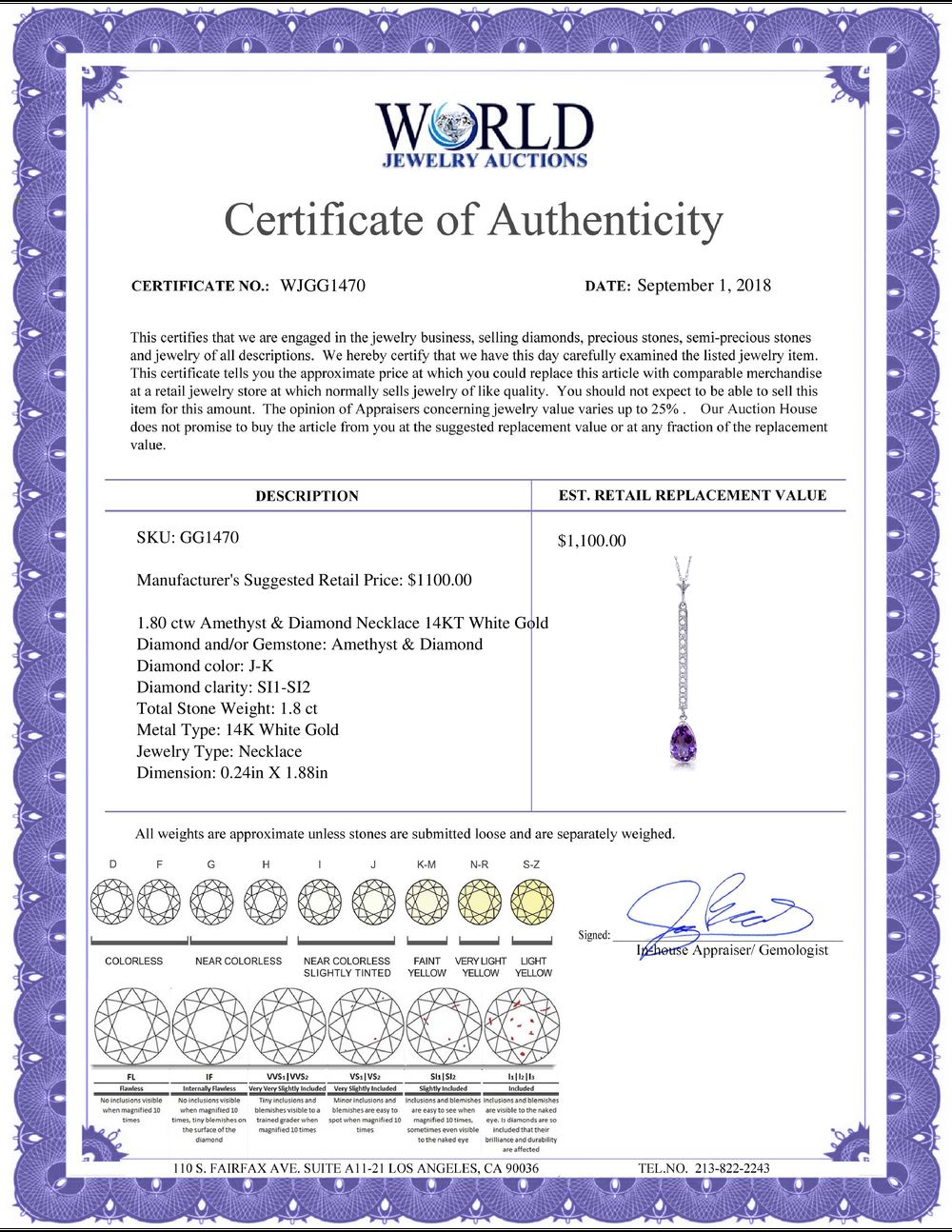 REF-33W4Y - SKU: GG1470 ---- Genuine 1.80 ctw Amethyst & Diamond Necklace 14KT Rose Gold