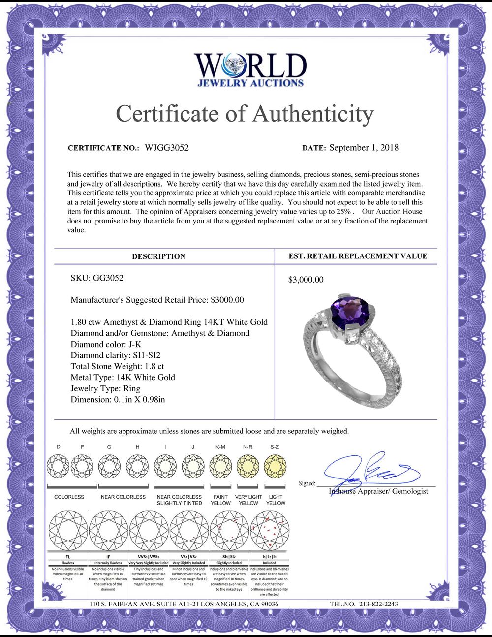 WORLD JEWELRY AUCTION believes to the best of its knowledge that the information presented in any listing has come from reliable sources. Such information is presented solely for the convenience of the Purchaser. WJA makes no warranties of any kind related to the information presented in any listing. WJA further makes no warranties, either express or implied, relating to the value, marketability or condition of the lot described in any listing. Prospective bidders should investigate a lot thoroughly before bidding. By bidding the Bidder acknowledges that Bidder has investigated the lot to his or her satisfaction, or, that Bidder has chosen not to do so, and agrees to accept the lot being bid on with no objections after the sale closes. If you are uncertain please contact us with your questions prior to bidding. If you are still uncertain after we reply, please refrain from bidding. Photos other graphic material contained in any listing of generic or duplicate lots may be stock presentations and not necessarily of the specific lot.
