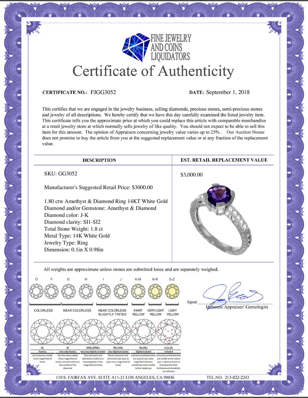 All Gia and EGL Diamonds are subject to availability due to consignors’ terms with us.