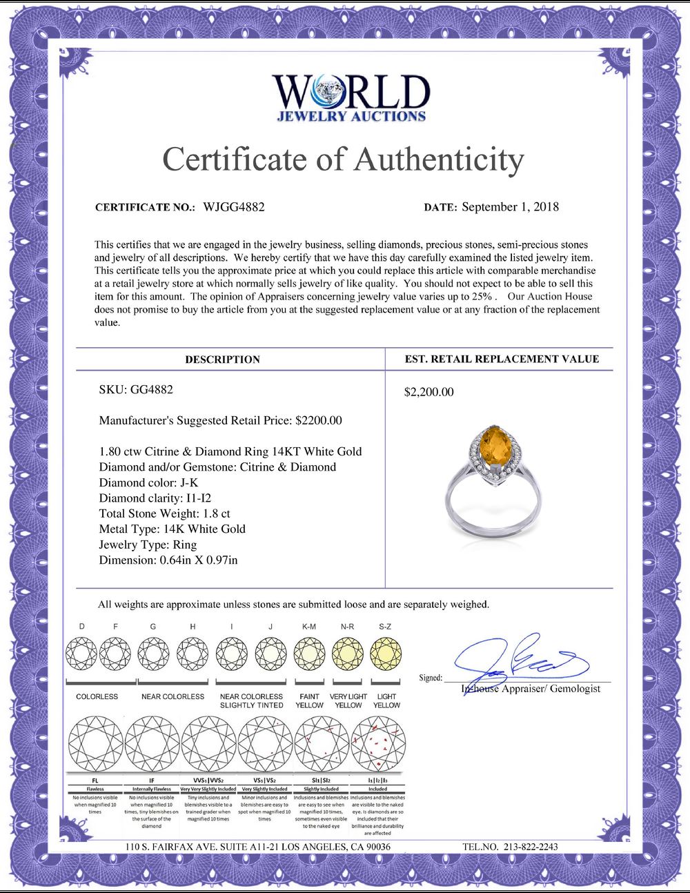 REF-70W5Y - SKU: GG4882 ---- Genuine 1.80 ctw Citrine & Diamond Ring 14KT White Gold
