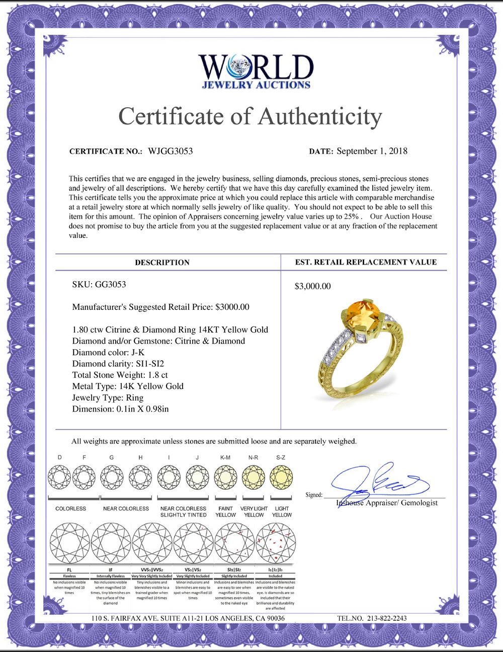 REF-98F3Z - SKU: GG3053 ---- Genuine 1.80 ctw Citrine & Diamond Ring 14KT White Gold