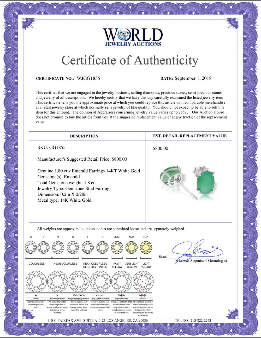 REF-24N5R - SKU: GG1855 ---- Genuine 1.80 ctw Emerald Earrings 14KT Rose Gold