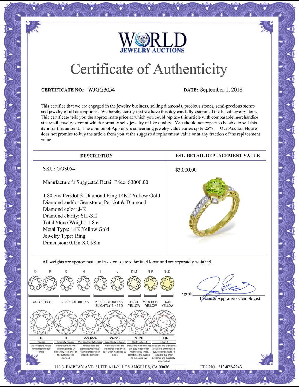 REF-98P3H - SKU: GG3054 ---- Genuine 1.80 ctw Peridot & Diamond Ring 14KT Yellow Gold