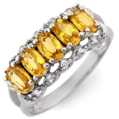 Diamond: 10 Round cut @ 0.15 ctw---- Clarity: SI-I---- Color: H-K----Gemstone: Natural Sapphire----Gemstone color: Yellow----Gemstone quality: Good-to-Very Good----Gemstone Cut & Weight: 5 Oval cut @ 1.65 ctw----Metal Purity & Color : 10K Gold-White----Gold weight: 3.30 grams----Ring size (US): 7----Dimension: Approx. 5/8 x 1/4----Consignor: World Jewelry Outlet----Delivery: Within 10 business days