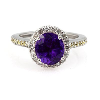 Genuine 1.85 ctw Amethyst Ring 14Kt White/Yellow  Gold  **|**|** Gemstone: Amethyst ; Total CTW: 1.85 CTW ; Metal Purity: 14KT ; Metal: White or Yellow Gold ; Dimension: 9X7MM ; Diamond Count 1: 8 ROUNDCUT ; Diamond CTW 1: 0.1 ; Clarity: SI1-SI2 ; Color: G-H ; Gems Count1: 1 Ovalcut ; Gems Weight 1 / Carat: 1.75 ; G; Availability: 3-10 Business days, ready to ship, with certification of appraisal will take 2 weeks. ; MSRP: $800