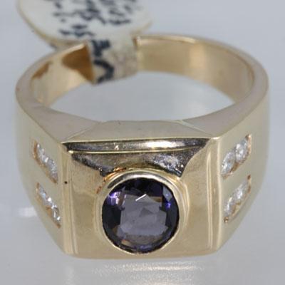 Gemstone: Sapphire ; Diamond Count 1: 8RD ; Diamond Weight: 0.54 ; Gemstone Color: Green ; Gemstone Weight: 1.35 ; Dimension: 7X6MM ; Metal Purity: 14KT ; Metal: Gold-Yellow ; Ring Size: 7.5
