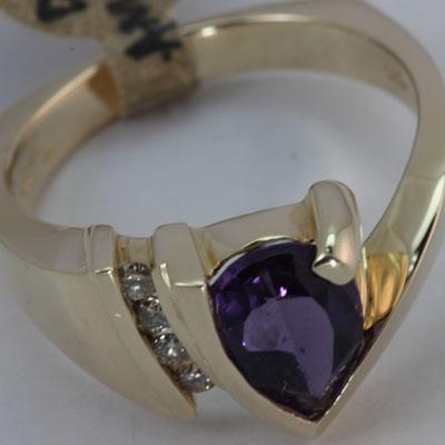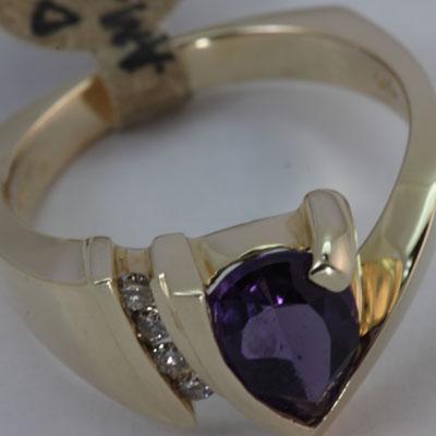 Gemstone: Amethyst ; Diamond Count 1: 4RD ; Diamond Weight: 0.14 ; Gemstone Color: Purple ; Gemstone Count: 1 Pear Shape ; Gemstone Weight: 1.76 ; Dimension: 9X7MM ; Metal Purity: 14KT ; Metal: Gold-Yellow ; Ring Size: 7