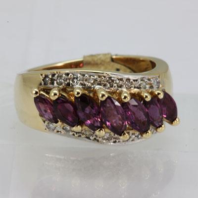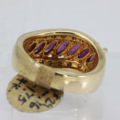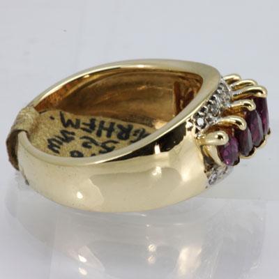 Gemstone: Ruby ; Gemstone Weight: 1.75 ; Diamond Count: 18RD ; Diamond Weight: 0.16; Metal Purity: 14KT ; Metal: Yellow Gold ; Ring Size: 6.5