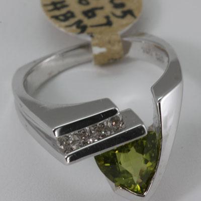 Main Stone: Peridot ; Diamond CTW: 0.15 ; Gemsonte CTW: 1.8 : Main Stone Treatment: Not Enhanced ; Exact Total Weight: 1.95 ; Metal: White Gold ; Ring Size: 7 ; Main Stone Color: Green ; Metal Purity: 14K (Soild, Unplated) ; Condition: New