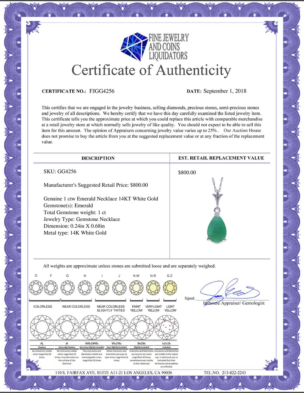 Genuine 14K White Gold 1 ctw Emerald Necklace