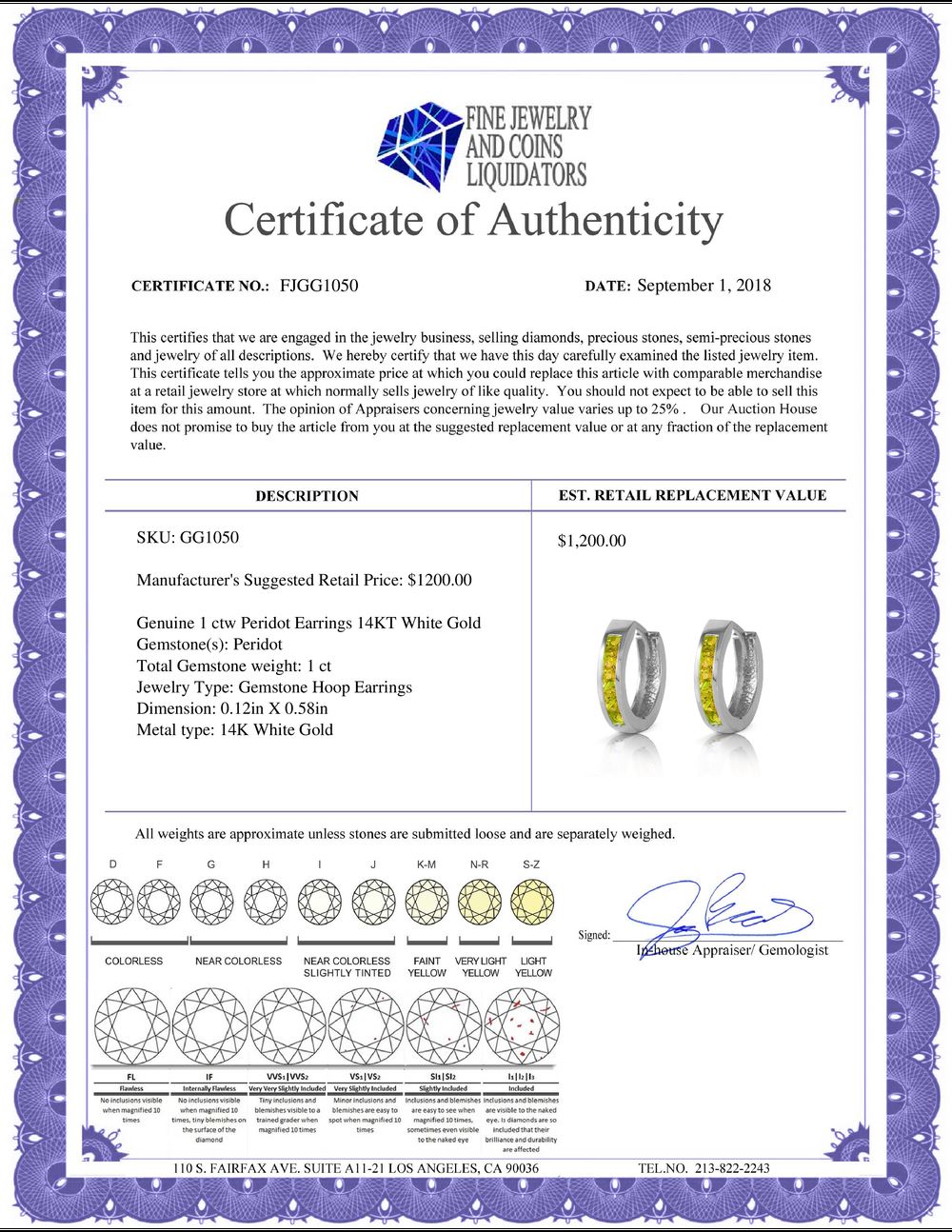REF-37F4Z - SKU: GG1050 ---- Genuine 1 ctw Peridot Earrings 14KT White Gold