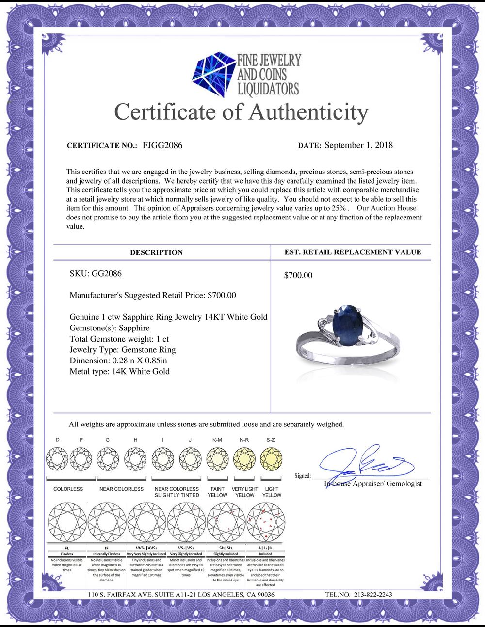 REF-22F3Z - SKU: GG2086 ---- Genuine 1 ctw Sapphire Ring 14KT White Gold