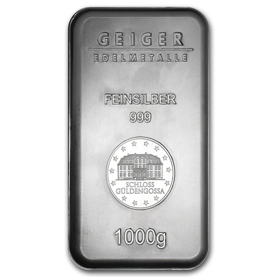 SKU: 74694 - One piece Genuine 1 kilo 0.999 Fine Silver Bar - Geiger Security Series