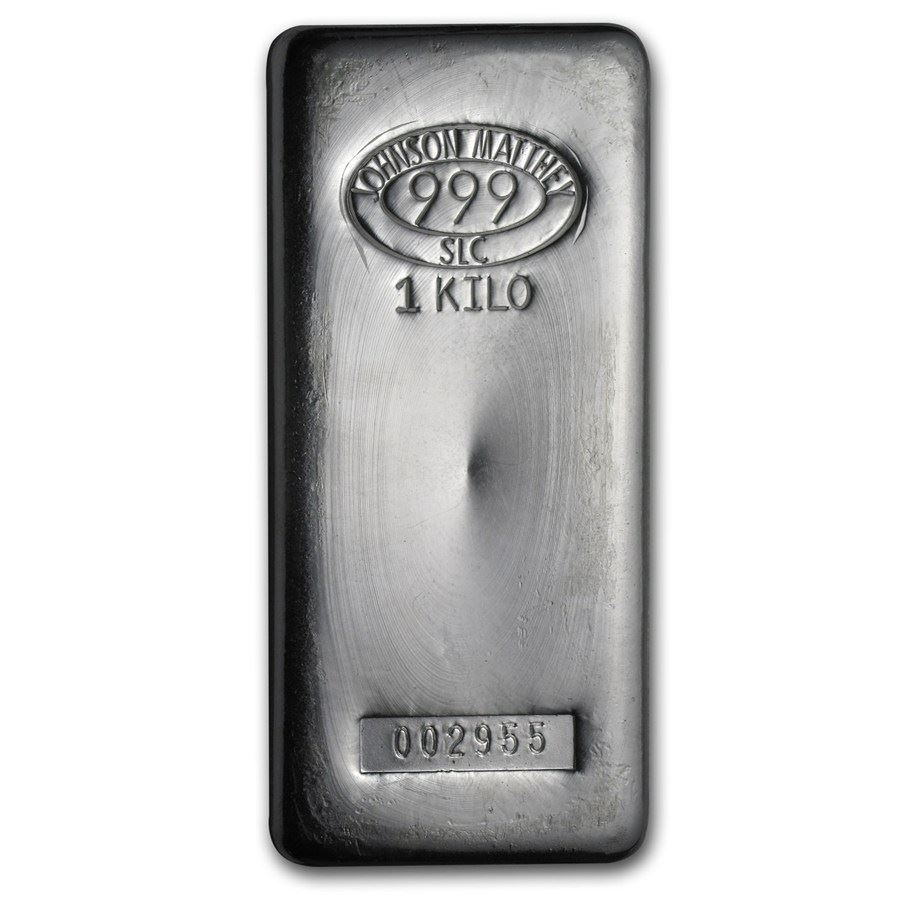 One piece Genuine 1 kilo 0.999 Fine Silver Bar - Johnson Matthey