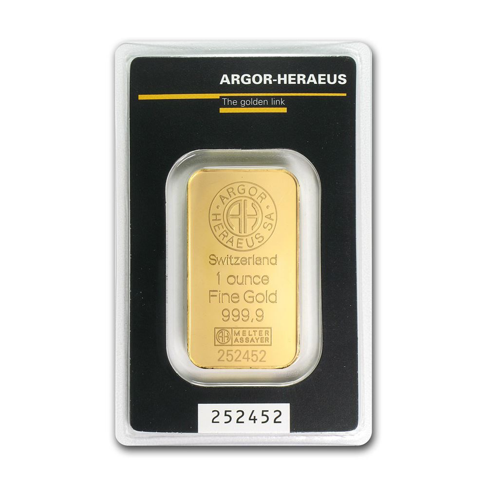 SKU: 45453 - One piece Genuine 1 oz 0.9999 Fine Gold Bar - Argor-Heraeus