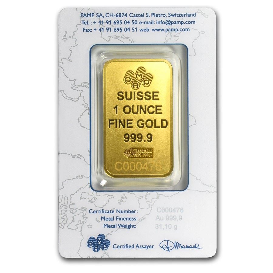 SKU: 84698 - One piece Genuine 1 oz 0.9999 Fine Gold Bar - PAMP Suisse