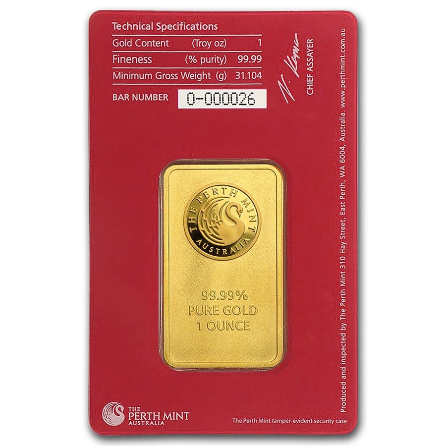 SKU: 23565 - One piece Genuine 1 oz 0.9999 Fine Gold Bar - Perth Mint Oriana