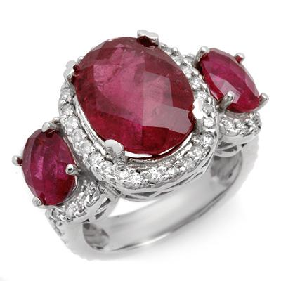 Diamond: 77 Round cut @ 1.0 ctw---- Clarity: SI-I---- Color: H-K----Gemstone: Natural Rubellite----Gemstone color: Red----Gemstone quality: Good-to-Very Good----Gemstone Cut & Weight: 3 Oval cut @ 9.0 ctw----Metal Purity & Color : 10K Gold-White----Gold weight: 8.50 grams----Ring size (US): 7----Dimension: Approx. 5/8 x 7/8----Consignor: World Jewelry Outlet----Delivery: Within 10 business days