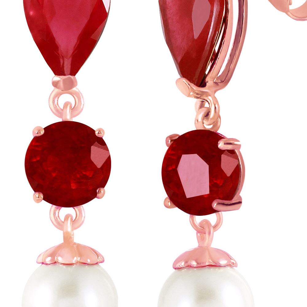 Genuine 14K Rose Gold 10.1 ctw Ruby & Pearl Earrings