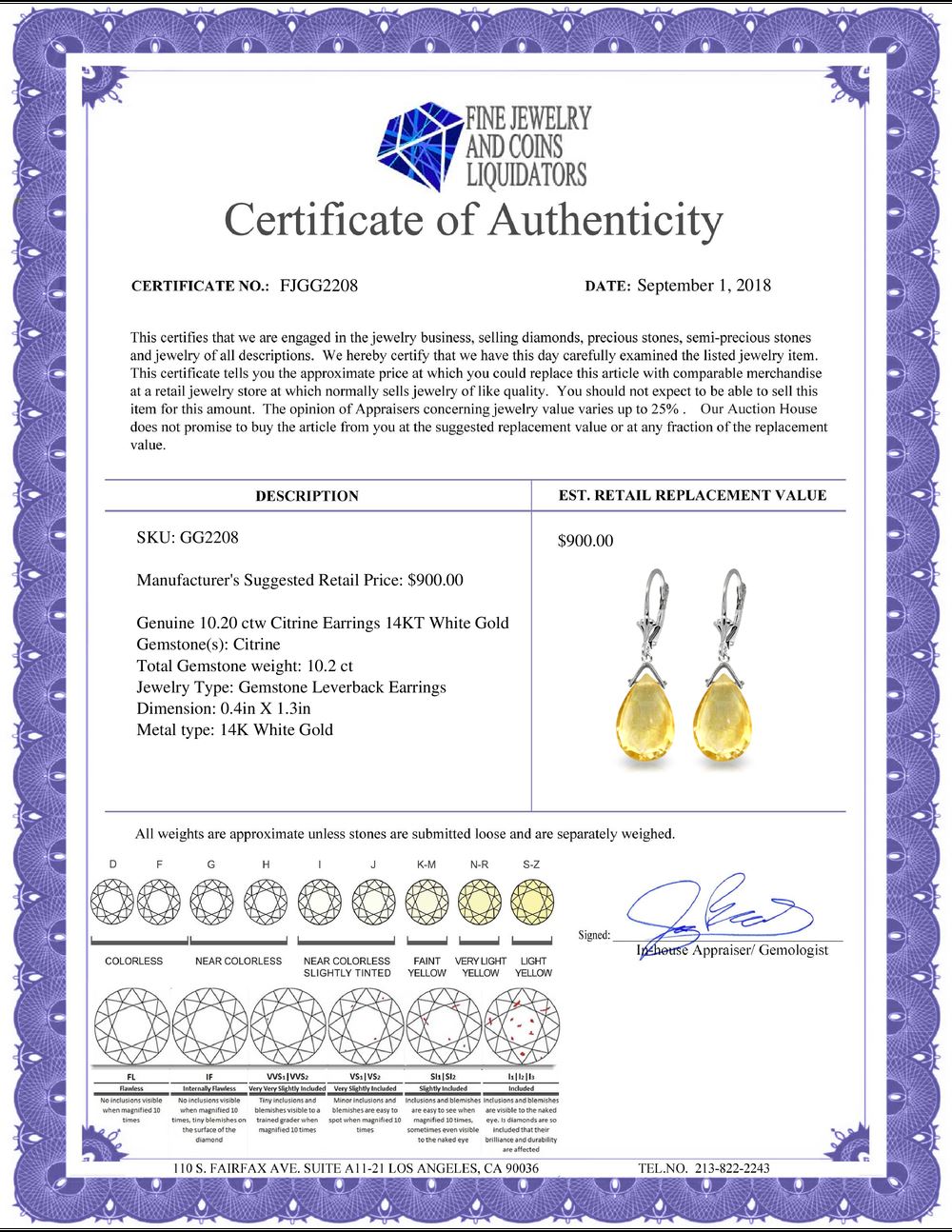REF-28M9T - SKU: GG2208 ---- Genuine 10.20 ctw Citrine Earrings 14KT Rose Gold