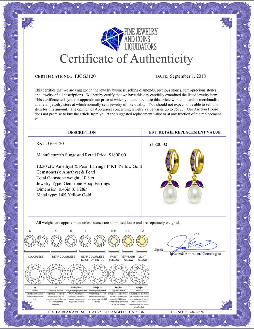 REF-56M7T - SKU: GG3120 ---- Genuine 10.30 ctw Amethyst & Pearl Earrings 14KT Yellow Gold