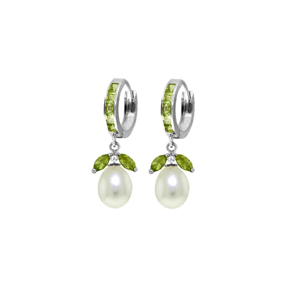 Genuine 14K White Gold 10.3 ctw Peridot & Pearl Earrings