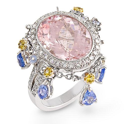 SKU 7256 - Genuine 10.43 ctw Diamond & Morganite, Ladies Ring 18K White Gold a $4000+ value* Diamonds: 52 Round cut @ 0.61 ctw Color: G-H Clarity: VS2-SI1 Gemstone: 1 Morganite, 14 @ 9.82 ctw Gem Quality: Good-to-Very Good Metal: Solid 18K White Gold @ 9.96 grams Availability: 7 business days or less