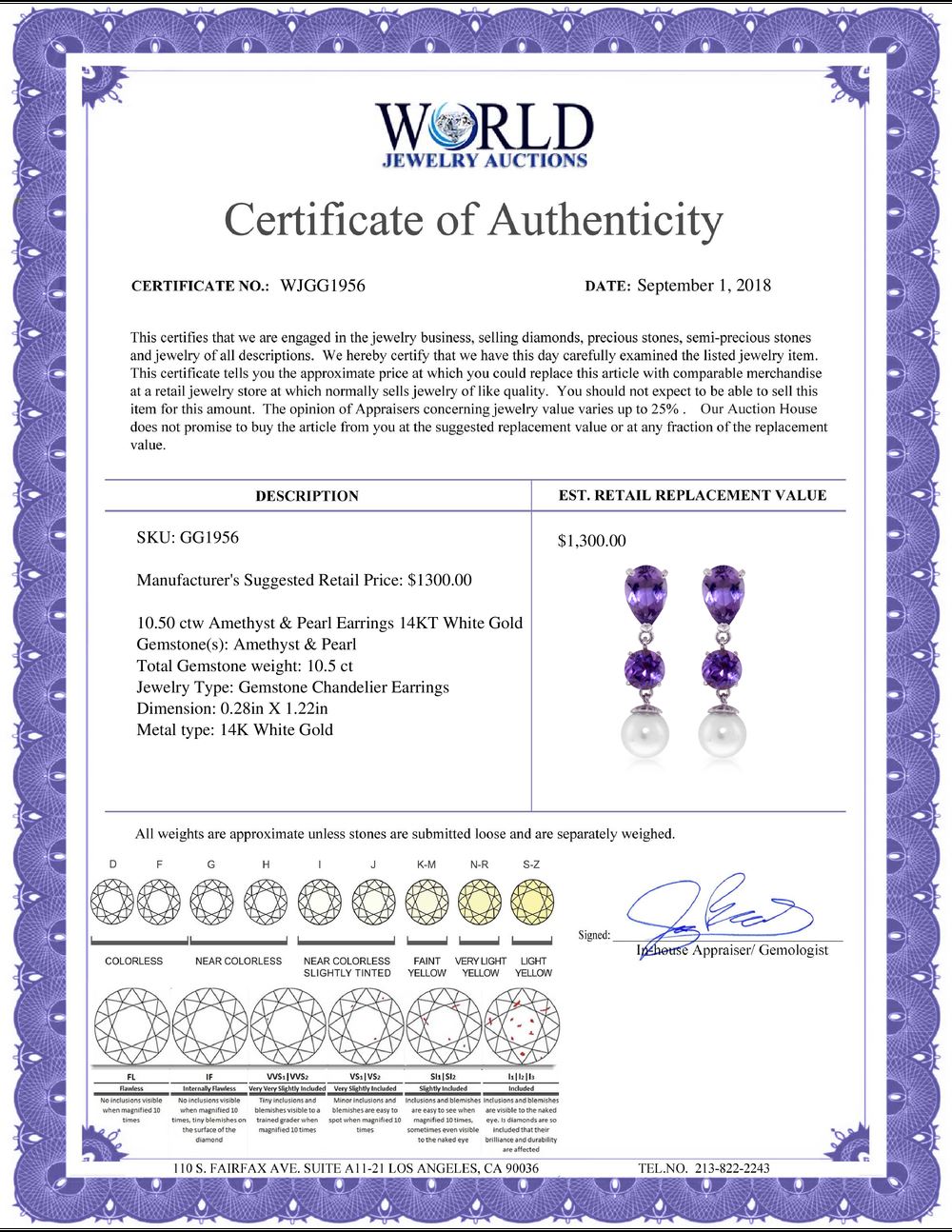 REF-40Y9F - SKU: GG1956 ---- Genuine 10.50 ctw Amethyst & Pearl Earrings 14KT White Gold